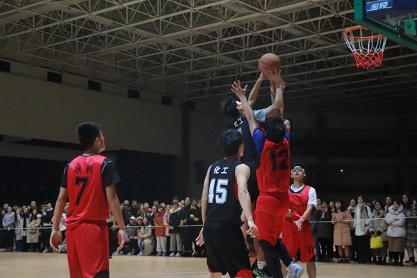 伴随着主裁判一声哨响,比赛正式开始,观众席中迸发出此起彼伏的加油声。刚开局,化工篮球队就吹响了进攻的号角,24号球员底线命中三分,旗开得胜,观众席爆发出震天动地的欢呼声。比赛过程中化工篮球队的球员们始终团结一致,默契配合,在篮球场上尽情展现球技和合作能力。化工学院的粉丝们也热情满满,目不转睛,为球员们奋力欢呼呐喊,用热情喝彩点燃这体育馆中的冰冷空气。最后比赛进入倒计时,化工篮球队荣耀夺冠。