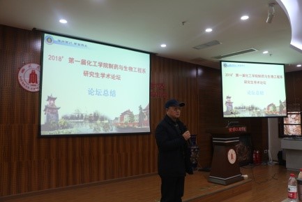 大会最后,张永奎教授和宋航教授为大会做总结发言。张永奎教授表示,制药与生物工程系近年来科研水平不断提高,发表论文数不断增加,对公司产品也提出了更高的要求。他表示,研究生最需要注重的是科研思路,由问题出发,寻找方法,解决问题,是培养科学思维的重要方式。最后,他希望各位研究生要加强自身学术报告水平,以更好的姿态站在台上展示学术成果。宋航教授表示,制药与生物工程系的研究生的课题之间都有一定的相似性,希望各位同学可以从报告中学习思路方法,增强自身科研水平。他表示,学术报告是展示科研成果的重要方式,希望与会同学能够站在更高水平的大会上进行主题报告。