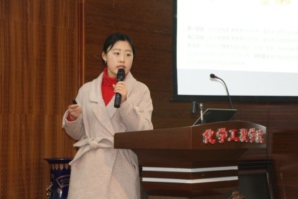 之后,论坛正式开始。来自李晖教授课题组的博士生孙巧媚为大家做了题为《食品添加剂与生物大分子的分子识别过程》的主题报告,介绍了8种食品添加剂在进入人体之后与蛋白质和DNA识别的过程分析;穆畅道教授课题组的博士生葛黎明的报告《纳米银的绿色制备及其在抗菌型胶原基复合材料中的应用》,为大家介绍了使用绿色还原剂双醛黄原胶制备纳米银,并将其应用于胶原基复合海绵材料,该材料在人体具有广泛应用前景;来自埃塞俄比亚的职工Nigussie Alula Yohannes做了题为《Doping Metal Organic Frameworks with Ionic Liquids for Adsorption of Tetracyclines from Water Samples》的报告,他表示离子液体目前在各个领域均具有广泛地应用,将离子液体掺杂金属有机骨架多孔材料可以提高其吸附存储性能,拓宽其应用领域。之后,他表示很高兴参与这样的论坛,也从其他博士的报告中学到了很多东西,希望之后可以继续加强与其他同学的交流。之后,冯雪婷、胡婉蓉、雷金凤、龚贵东、李盼禹分别为大家做了《用磁性离子液体选择性提取和分离茶叶中的茶多酚》、《剩余污泥的减量与资源化》、《明胶基自愈合水凝胶的构建》、《透明质酸包裹环钯化合物纳米胶束的制备及其抗肿瘤活性研究》和《餐厨垃圾的资源化综合利用》的报告。