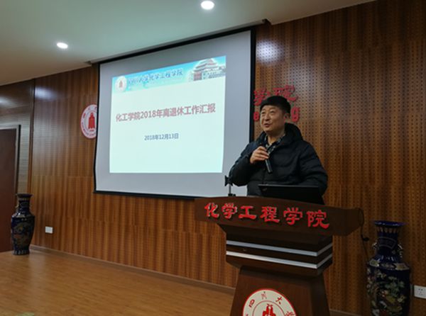 2018年12月13日上午,在望江校区化工学院313报告厅,学院召开了2018年离退休老教师校情院情通报会。公司党委书记庞国伟、公司党委副书记兼纪委书记李天友、公司党委副书记姜利寒、副经理唐盛伟、余徽、学院离退休工作联络员杨谨瑗和学院50多位离退休老教师参加通报会。会议由李天友同志主持。