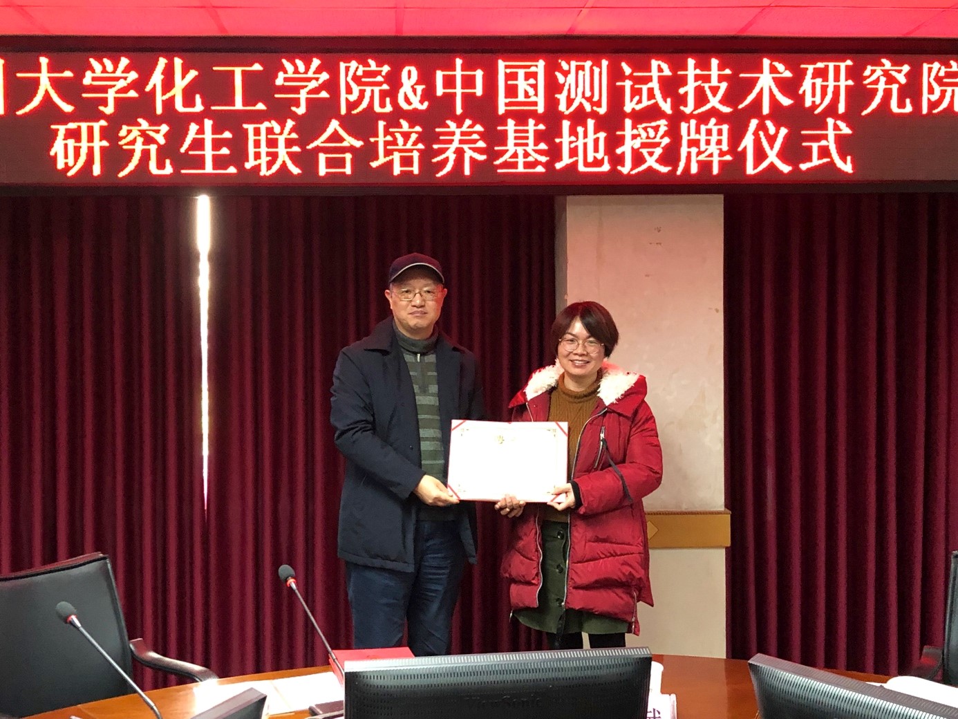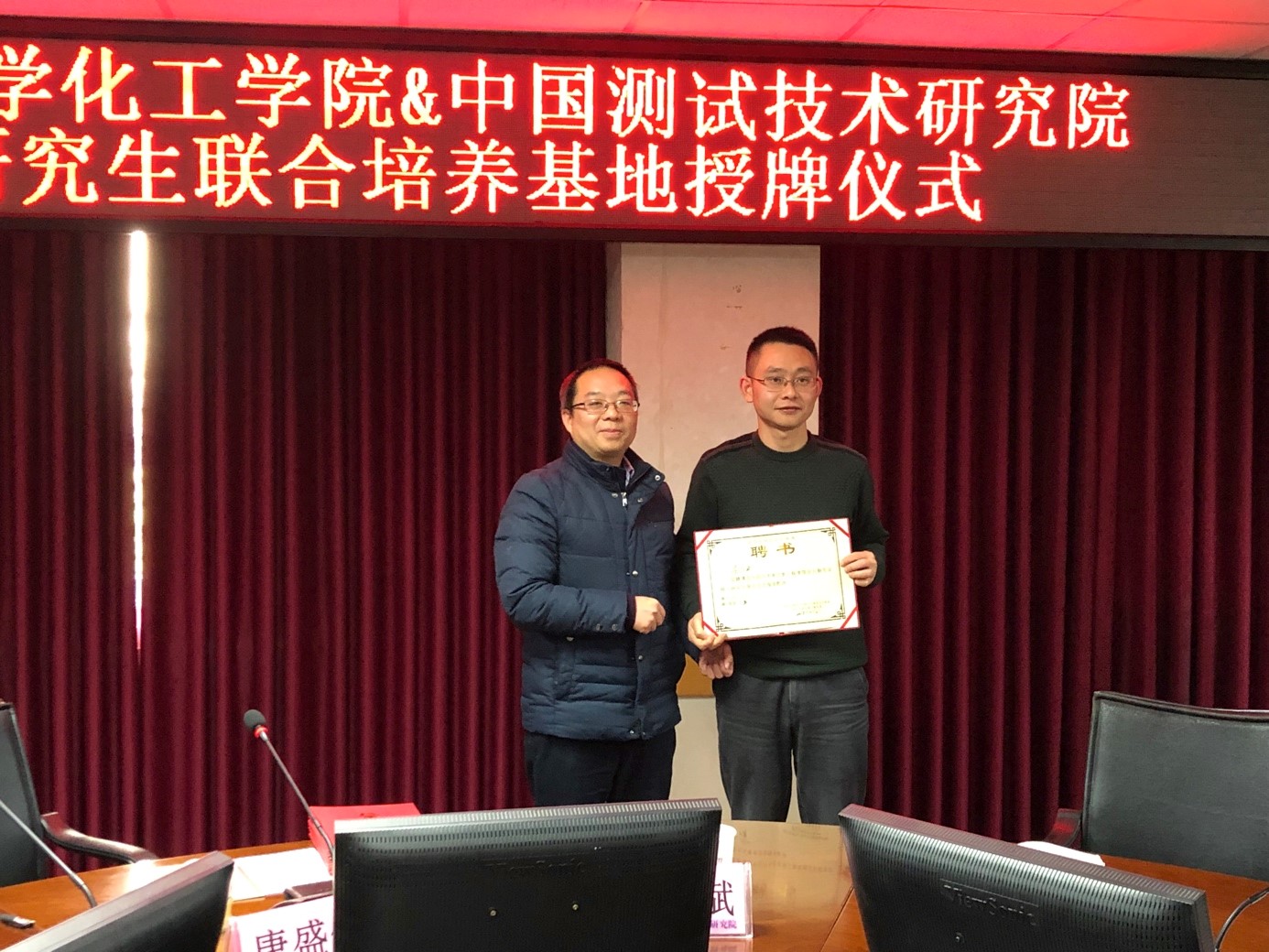 2019年1月11日上午,“bb贝博艾弗森官方网站-中国测试技术研究院研究生联合培养基地”揭牌仪式在中国测试技术研究院举行。中国测试技术研究院杨杰斌副经理、科研处孙登峰处长和生物所李怀平所长等专家,ballbet贝博官方网站唐盛伟副经理、制药与生物工程系宋航等多位老师参加了此次揭牌仪式。