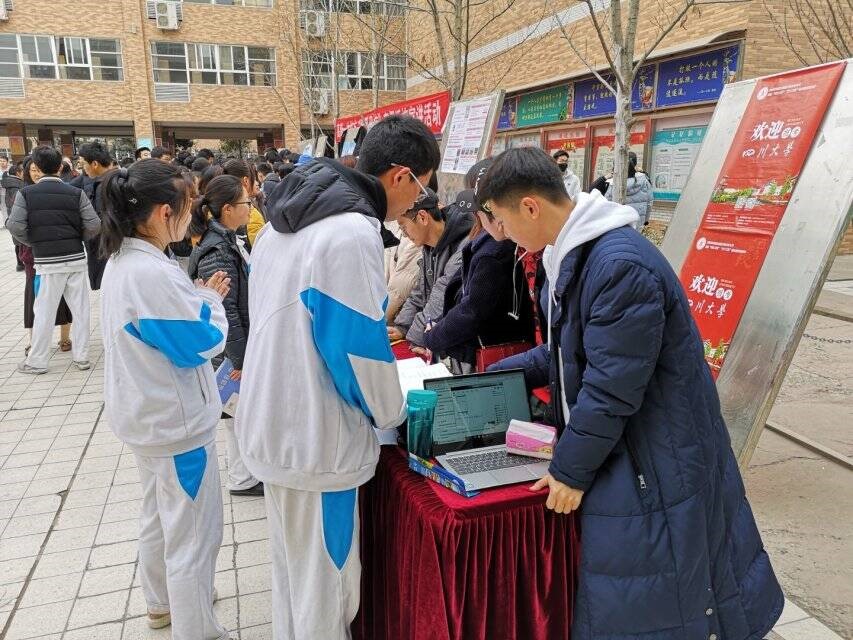 参与“学子母校行”的志愿者们前往各地高中发放招生宣传材料,通过举办宣讲会、设立咨询点等形式宣传公司的总体情况和招生政策,组织开展形式多样、内容丰富、主题鲜明的招生宣传活动。在南开中学中,志愿者们通过主题班会,将自制的视频展示给学校高三年级的员工,向同学们介绍学校办学状况与特色专业,以及各专业的就业情况。在绵阳市科学城第一中学,志愿者们利用自己准备的讲稿,将川大完善的育人体系与具有特色的人才培养方式介绍给高三年级员工,鼓励学弟学妹们报考川大,并表示以后随时为他们解答疑惑。据统计,各种宣讲会、班会、政策解答会共计20余场,参与高中生近500余人,目前还有部分团队正在活动进行中。