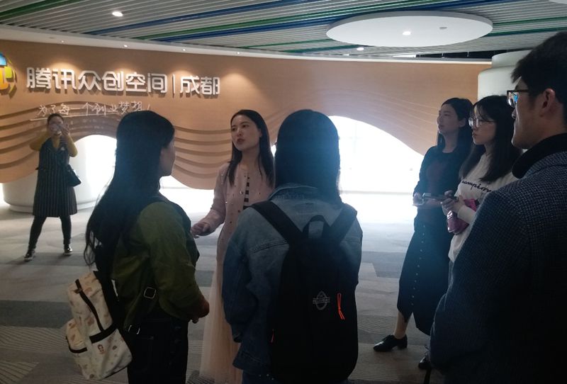 2019年3月28日上午10时,ballbet贝博官方网站师生应成都腾讯众创空间邀请,举办了走进“腾讯众创空间”活动。由李颖丽老师带队,在众创空间接待负责人陈萧萧和分享负责人刘珂名的带领下依次参观位于成都高新区天府三街腾讯大厦B座的腾讯众创空间,运营商成都天象互动众创科技服务有限公司。