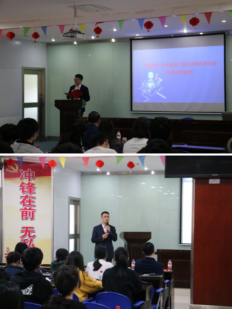 此后,公司安排了多位公司中层和技术骨干,包括研发部彭朝晖部长,质量副总逯佩荣,高级管理人员许樱和刘冬梅老师、公司优秀毕业生胡继猛(制药工程,2009届)和牟蓉(制药工程,2018届)等与同学们进行面对面交流和答疑解惑。