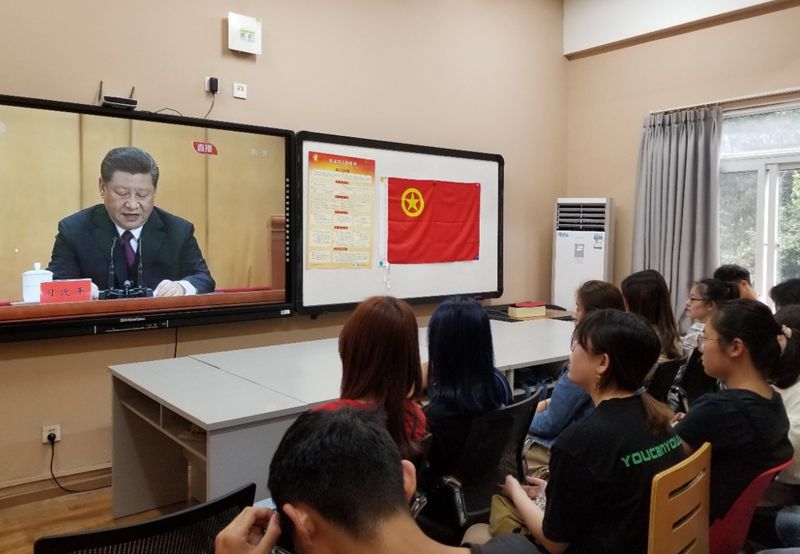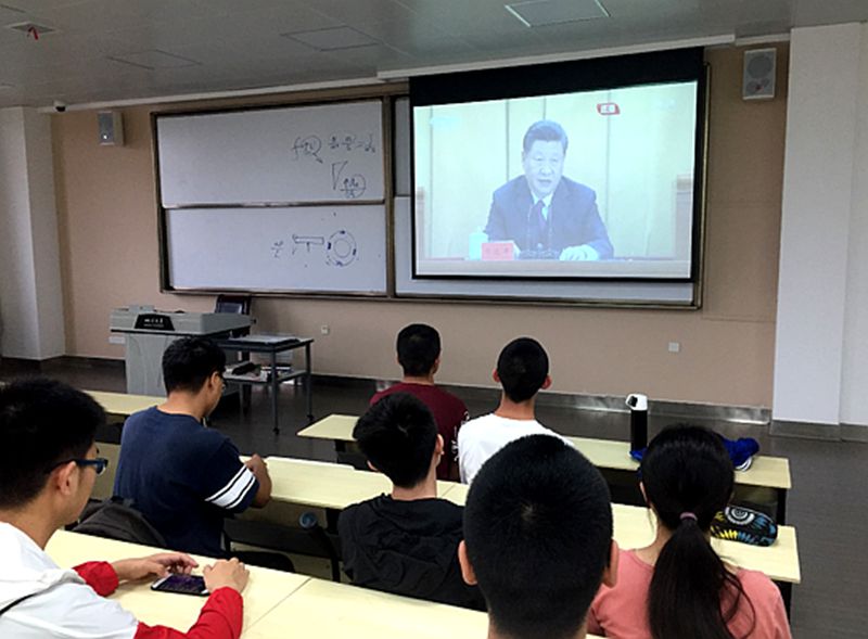 公司青年员工还分别在教室、寝室等场所收看了大会直播。