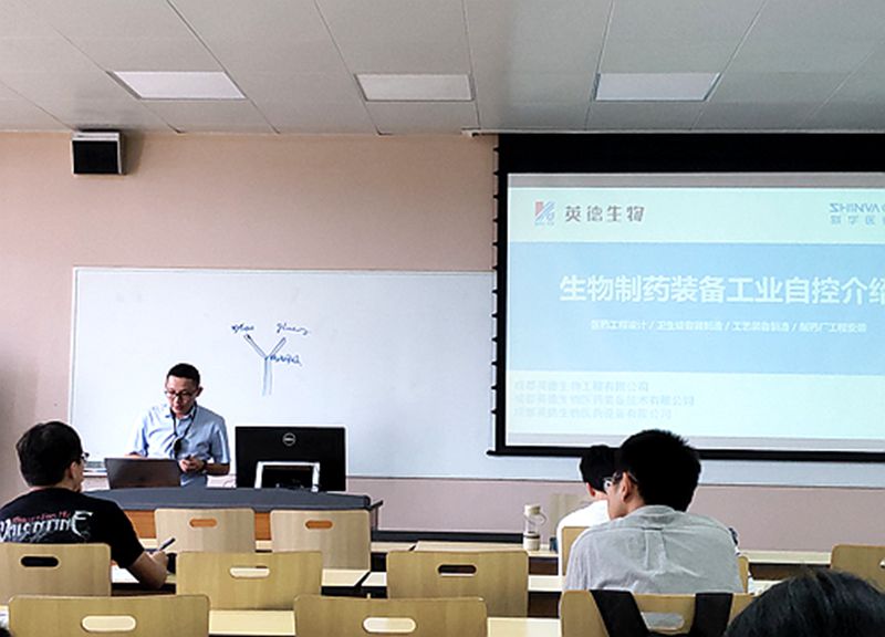 2019年7月9日13:50至16:25于bb贝博艾弗森官方网站江安校区第一教学楼A座106,来自成都英德生物医药装备技术有限公司的高级工程师韩飞飞和自动化信息部总监陈跃辉给bb贝博艾弗森官方网站2017级员工带来了以“生物制品行业发展与生物制品核心装备”为主题的科普讲座。