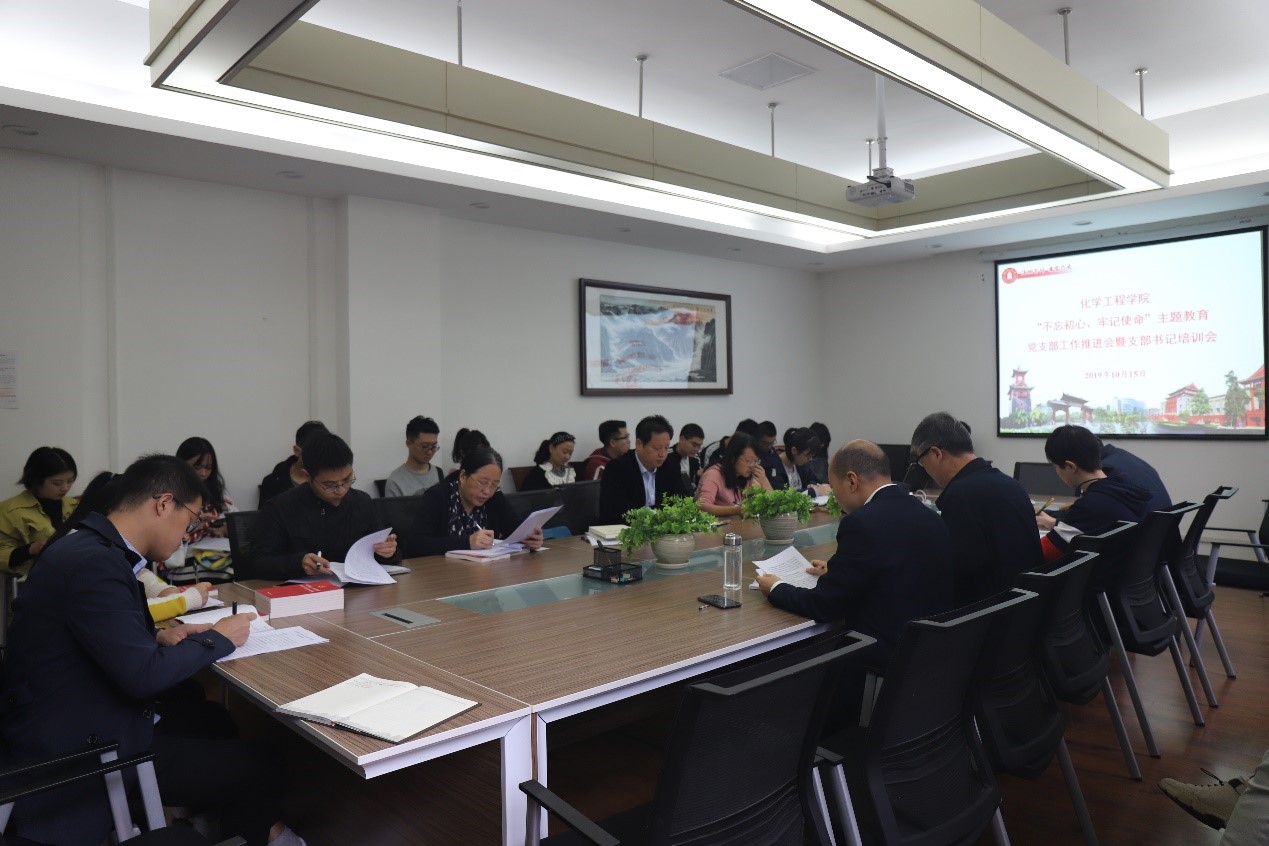 10月15日上午,bb贝博艾弗森官方网站在望江校区化工楼227会议室组织开展“不忘初心、牢记使命”主题教育党支部工作推进会暨党支部书记培训会。公司党委书记庞国伟、党委副书记兼纪委书记李天友、党委副书记姜利寒,公司党政办主任李晓燕、党建管理科科长高敏和全体支部书记参加此次会议。