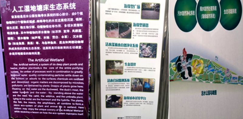 在讲解员的带领下进行了参观,大家了解到活水公园是目前全球唯一的城市内湿地公园,拥有着一套独特的污水、废水和雨水的收集处理系统。其建造的最初目的是为市民提供一个集环境、教育和休闲娱乐为一体的城市公园,整个公园对保护生态教育的功能无处不在,寓教于乐。大家在尽情呼吸新鲜甜美的空气,享受大自然的惠泽的同时,学习到了湿地生态系统的“天然过滤器”功能,这一生态功能来净化污染物中的病毒,有效清除污水中的“毒素”。