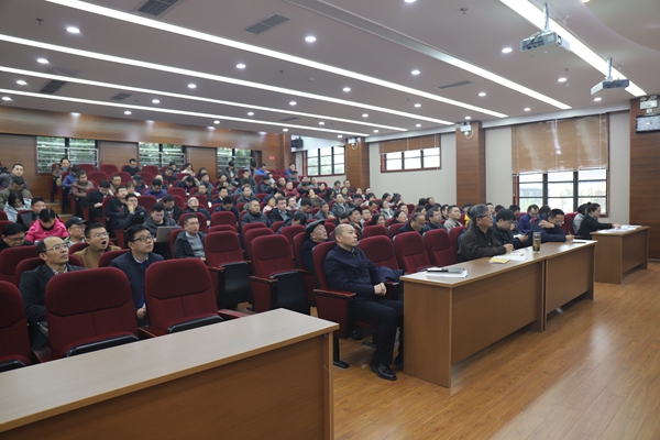 滕书记以“学习贯彻四中全会精神,着力健全党统一领导、全面覆盖、权威高效的监督体系”为题,从党的十九届四中全会《决定》解读,学校深入学习贯彻党的十九届四中全会精神、完善中国特色社会主义现代大学制度,关于全面从严治党和党风廉政建设等三个方面对全会的重大意义、显著优势、重点任务进行了回顾。谈到如何贯彻落实党的十九届四中全会精神,滕书记说到,学院应该进一步建立健全管理体制机制、规范和加强学术组织建设、完善监督体系等,深入推进治理能力现代化。对于全面从严治党和党风廉政建设,滕书记从全面从严治党新形势、学校纪委的职责、关于全面从严治党和党风廉政建设等,结合学校近年来查处的一些典型案例,对每一位教师如何贯彻落实中央决策部署和学校的有关要求进行了详细解读。