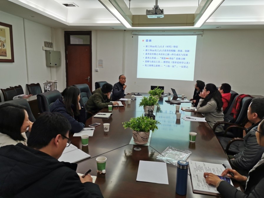 最后,朱家骅老师以《化工原理》课程对新工科人才素养的基础性作用为题,向大家介绍了新工科背景下化工人才的时代特征,提出新工科背景下化工人才素养的精髓在于探索与创新,素养的养成在于培养员工“现象←→理论”的思维习惯,而模型化是思维与表达的工具,同时提出三传一反是化工原理之原理,并举以实例,阐述了模型化表达在化工原理课程及化工领域中的应用;最后指出,新工科背景下化工的教学改革应依靠教师、教材及教学计划这“三教”改革,为今后教研室的建设指明了发展方向。