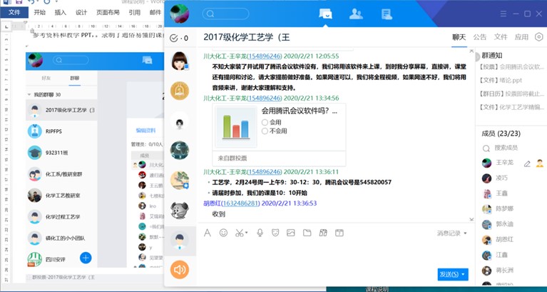 三尺讲台变成虚拟平台,同窗共读也变成了同网共学。为了方便同学们在线学习和交流,学院紧急建立了178个课程QQ群,选课的同学们均已按照要求加入到相应的课程群中。其中,有44门次课程选用在线资源课程授课。在这场教学模式改革的“战役”中,学院全体老师认真学习相关理论知识,充分利用假期时间安排网上授课内容,制作视频课件,等待着与员工的第一视频见面。课程授课采用目前流行的腾讯会议、ZOOM、SPOC、QQ群、微信群等一种或是几种形式结合方式。今天上午,上线的几门专业理论课在同学们的期待中如期上线,同学们对这种方式纷纷表示赞同,取得了显著的效果。老师还在群内定时在线答疑和在线辅导,解决学习当中出现的问题。