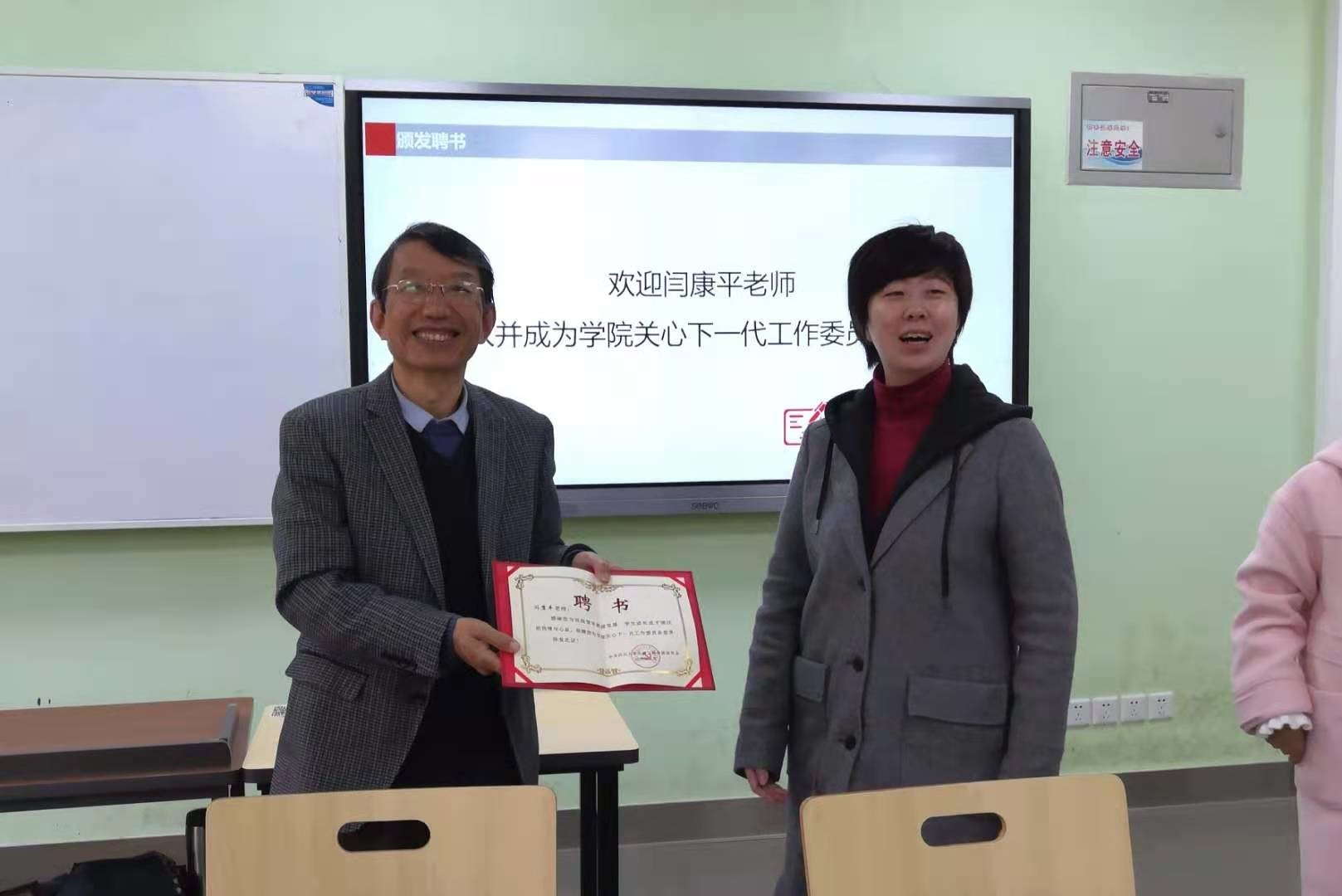 图2 公司党委副书记姜利寒老师为闫康平老师颁发聘书的照片