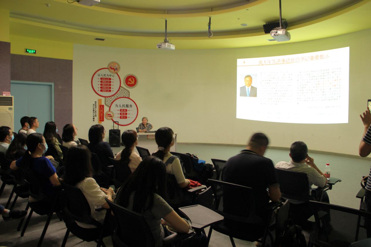 参观结束后,党员同志们来到科技馆三楼党建室,共上主题党课。bb贝博艾弗森官方网站杰出教授、全国首批黄大年式教师团队负责人、bb贝博艾弗森官方网站离退休第一党支部党员、84岁高龄的钟本和同志全程参加了本次7个党支部联合开展的党史学习教育,并为参加活动的党员同志们以“不忘初心,与磷同行,矢志创新”为题上了一堂生动感人的主题党课。