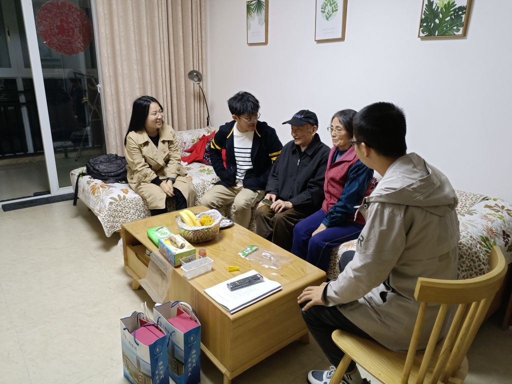2021年10月15日星期五晚上7点,ballbet贝博官方网站本科社区党支部的四位员工党员前往文星花园方善如、董宗玉伉俪家中探望,代表学院在重阳佳节给予老教师们关心和温暖,也代表本科社区党支部给老师们送去真挚的祝福;同时,同学们也在生活、学习和就业方面和老师们进行了积极的交流,从老师们丰富的阅历和知识中学习。