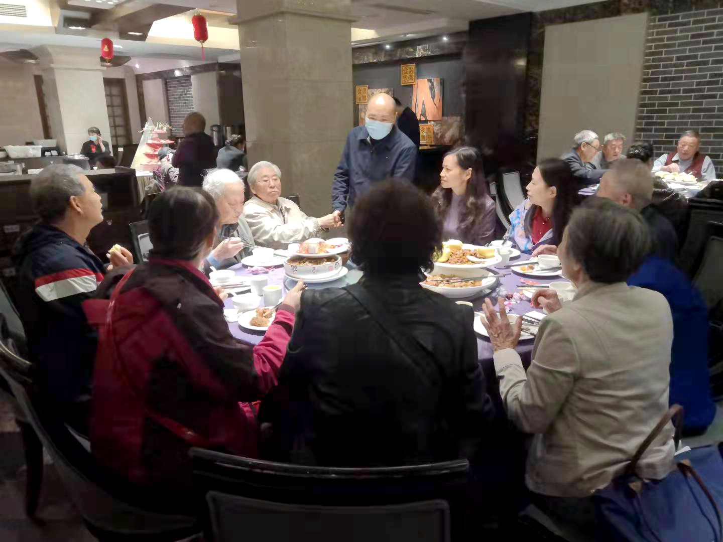 2021年10月13、14日中午,学院离退休教师在科华苑欢聚一堂,开展了重阳节活动。公司党委副书记兼纪委书记李天友来到现场,代表庞书记、赵经理向离退休老教师们送上亲切的问候和节日的祝福,并逐一关心老师们的生活和身体状况,了解他们对学校和学院工作的意见和建议。学院离退休工作联络员杨谨瑗向老教师们汇报了近期学校和学院的重要工作、今年活动费福利费的使用情况,以及老教师们关心的社保、养老、医疗等方面的新政策和新情况,并且针对每一位老师遇到的不同情况进行了耐心细致的解答。