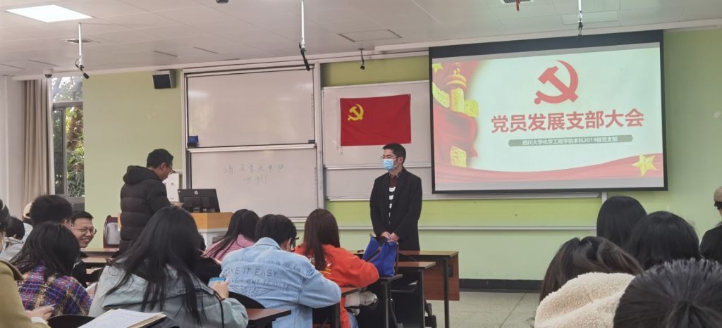 2022年3月4日下午14:00,在江安校区第一教学楼B做107教室,bb贝博艾弗森官方网站化工学院本科2019级党支部召开2021年度民主评议会暨发展洪逸航等二十四位同志为预备党员的