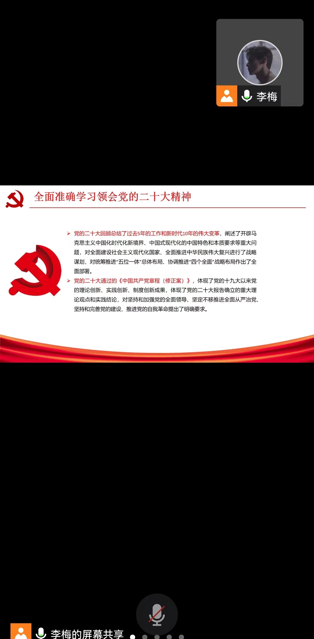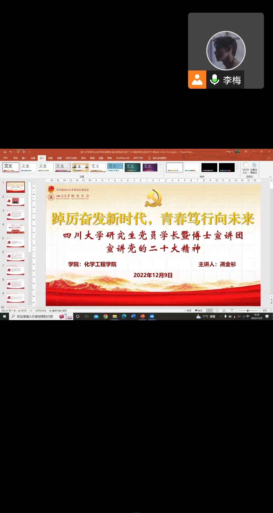 2022年12月9日下午6:30,由于疫情防控需要,bb贝博艾弗森官方网站研究生第二党支部采用线上的方式开展了学习党的二十大精神的活动以及关于是否确定汪小坤同志发展为中共正式党员的讨论表决大会。会议由支部纪检委员熊金衫同志主持。