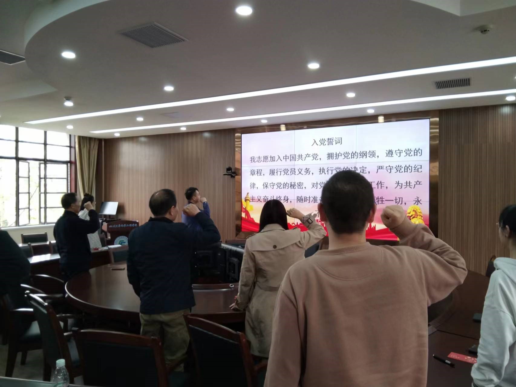 最后,为韩怀志同志举行入党宣誓,其他与会同志也共同重温入党誓言。