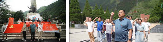 下午2点半,参加联合党建活动的三个支部党员代表,共同出发到教育基地第一站:红军飞夺泸定桥纪念碑公园。在纪念碑前,不忘先烈,牢记历史,朱权同志带领大家向英雄先烈敬献花篮,向先烈们鞠躬,并作为领誓人,带领大家重温入党誓词,表达报效祖国的决心。其后,大家一起来到红军飞夺泸定桥纪念馆,在纪念馆内大家根据文史档案和实物记录,重新追溯了那段波澜壮阔的历史,感受到先烈们的为国牺牲情怀,情感得到再一次升华。最后,大家奔赴教育基地第三站:重走泸定桥。看着湍急河水,伴着晃动的铁索桥,耳畔似乎又想起了冲锋的号角,英雄们前仆后继冲锋的身影在眼前浮动。完成三个站点的参观之后,大家都觉得深受爱国教育,一定要为国干事创业。
