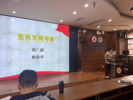 支部内的其他党员同志根据自己在平时生活中对两名发展对象的了解,对其思想态度、学习科研等方面作出评议。最终,经与会党员无记名投票,发展对象杨丽同志和赖俊华同志被顺利接收为中共预备党员。
