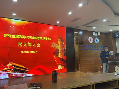 2024年1月6日下午13:20,中共ballbet贝博官方网站研究生膜科学与功能材料党支部于化工楼313会议室召开了接收预备党员和预备党员转正支部大会。本次大会由支部书记王坡同志主持,分为两个议程,主要讨论和审议接收党员发展对象杨丽、赖俊华同志为预备党员及陆广源、王志巍等六位预备党员转正的相关事宜。
