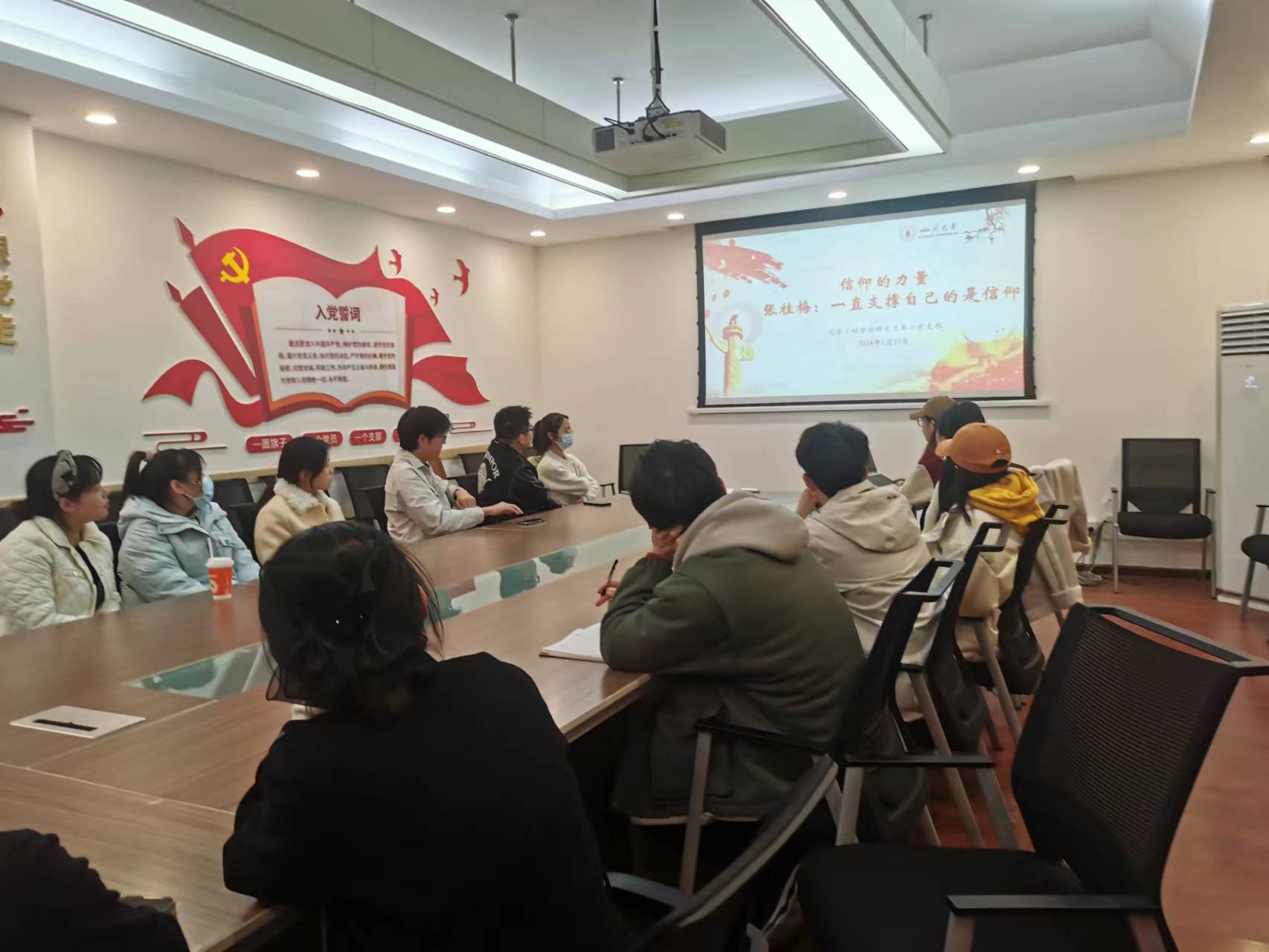 “一直支撑我的是信念,是对党的信仰。”这句话是我国“七一勋章”获得者、中共二十大代表、全国妇联副主席(兼)、丽江华坪女子高级中学董事长张桂梅老师所说,她的目标不仅是帮助女孩们走出大山,更是培养她们成为社会主义接班人,忠于党和人民,去做更大的事情。为筑牢研究生第六支部党员同志的理想信念根基,2023年1月10日晚上7点,bb贝博艾弗森官方网站研究生第六党支部在望江校区化工楼227会议室开展了“信仰的力量”主题党会。会议由党支部书记李艳静同志主持,王娜同志作汇报。