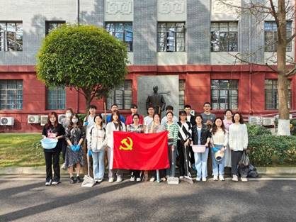 在清理结束后,大家一同前往张洪沅先生铜像前,举行了瞻仰仪式。仪式开始,支部书记杨秀英同志为大家介绍了张洪沅先生的事迹以及学习了爱国主义精神。张洪沅先生是我国化学工程教育的奠基人之一,在学习他爱国主义精神和雷锋精神的同时,告诫我们要以张洪沅先生为榜样,时刻提醒自己作为一名化工人的担当和使命,要不断充实自己的精神生活,不断提高自己的专业文化水平,让我们担起应有的责任,让自己的所学为祖国、为社会、为人民做出应有的贡献。