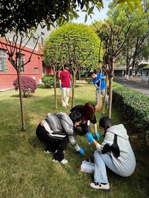 活动开始后,研究生第一党支部与磷化工党支部员工进行分工,分别进行擦拭铜像和清理草坪工作。活动中大家充分发挥自己的主动能动性,积极清理垃圾,不仅将规定范围内的草坪进行了清理,还对化工楼门口及马路进行了清扫。