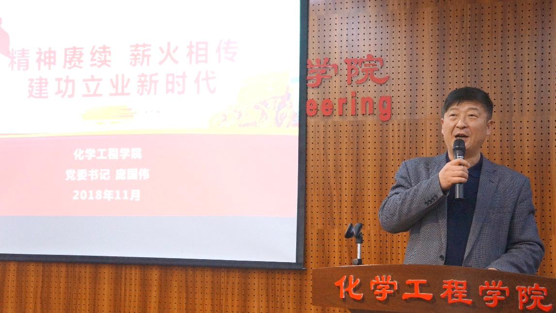 2018年11月30日下午,在望江校区正行楼313会议室,化学工程公司党委书记庞国伟为全院教师作了“精神赓续、薪火相传,建功立业新时代”的主题党课报告。bb贝博艾弗森官方网站全体党政班子成员和全体教师参加报告会。