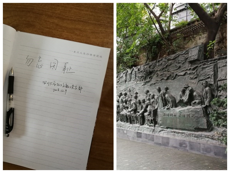 2018年12月9日,支部成员前往重庆大轰炸惨案遗址。1938年-1945年,重庆作为"国民政府"的陪都及政治、军事、文化中心,成为日军实施"以炸迫降"战略企图最主要的空袭目标。重庆大轰炸惨案遗址为了纪念在抗战期间空袭去世的人民而修建。当天下午,参观了桂园和特园中国民主党派立式陈列馆,桂园为著名的《双十协定》签订地点,重庆谈判期间,毛泽东同志在此接见民主人士。特园介绍了各民主党派的发展及它们与中国共产党风雨同舟、荣辱与共的光荣历史。在参观和学习中,我们充分认识到中国共产党领导的多党合作和政治协商制度的历史必然性,以及其伟大独创性和巨大优越性。我们作为ballbet贝博官方网站的教职工,肩负着教书育人的责任,作为化工行业的从业者,肩负着为国家化工发展贡献的使命,我们应继续奋斗,为国家培养社会主义建设者和接班人。