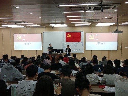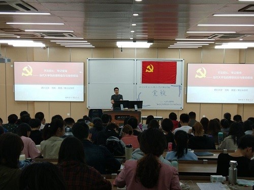 刘肖教授以“中国人有无信仰?”为话题开始授课,讲述了信仰的三个层次(宗教信仰,文化信仰,政治信仰),并引用习近平总书记,新加坡前总理李光耀,李言荣董事长等人的言语,阐述坚定理想信念的重要性。其中以习近平总书记所说的“理想信念就是共产党人精神上的‘钙’,没有理想信念,理想信念不坚定,精神上就会‘缺钙’,就会得软骨病”最为震撼。在课堂上,刘老师紧贴时代,以中美贸易战为例讲解身份认同与行为的关系,以邓小平爷爷为例解释“跟着党走,是对革命理想与信念的坚定追求,坚信正义事业必然胜利”,以法国“黄背心”运动为例,讲述中国共产党与其他国家党派的不同(中华人民共和国是由中国共产党建立的,而其他国家不是)。“教者,效也,上为之,下效之”。刘肖教授指出,广大党员干部是团结带领人民群众落实党的方针政策路线、创造幸福美满生活的谋划者、组织者、实践者,是保障党和人民事业兴旺发达的“关键少数”。中国共产党员的信念是什么?刘肖教授以中国发展道路探索的三个阶段(以西为师,以俄为师,走自己的路)开始,以幽默风趣的语言讲述中国先进分子学习西方的心路历程、十月革命、马克思主义的选择与社会主义制度的建立等。同时,刘肖教授以苏东剧变的历史教训为例,表明“西化”不可取,点明坚定马克思主义领导地位的重要性。最后,刘肖教授以某大学员工入寺体验佛教生活,白恩培受贿案,老人摔倒扶不扶等为例,讲述未来我们如何成为一名合格的共产党人。