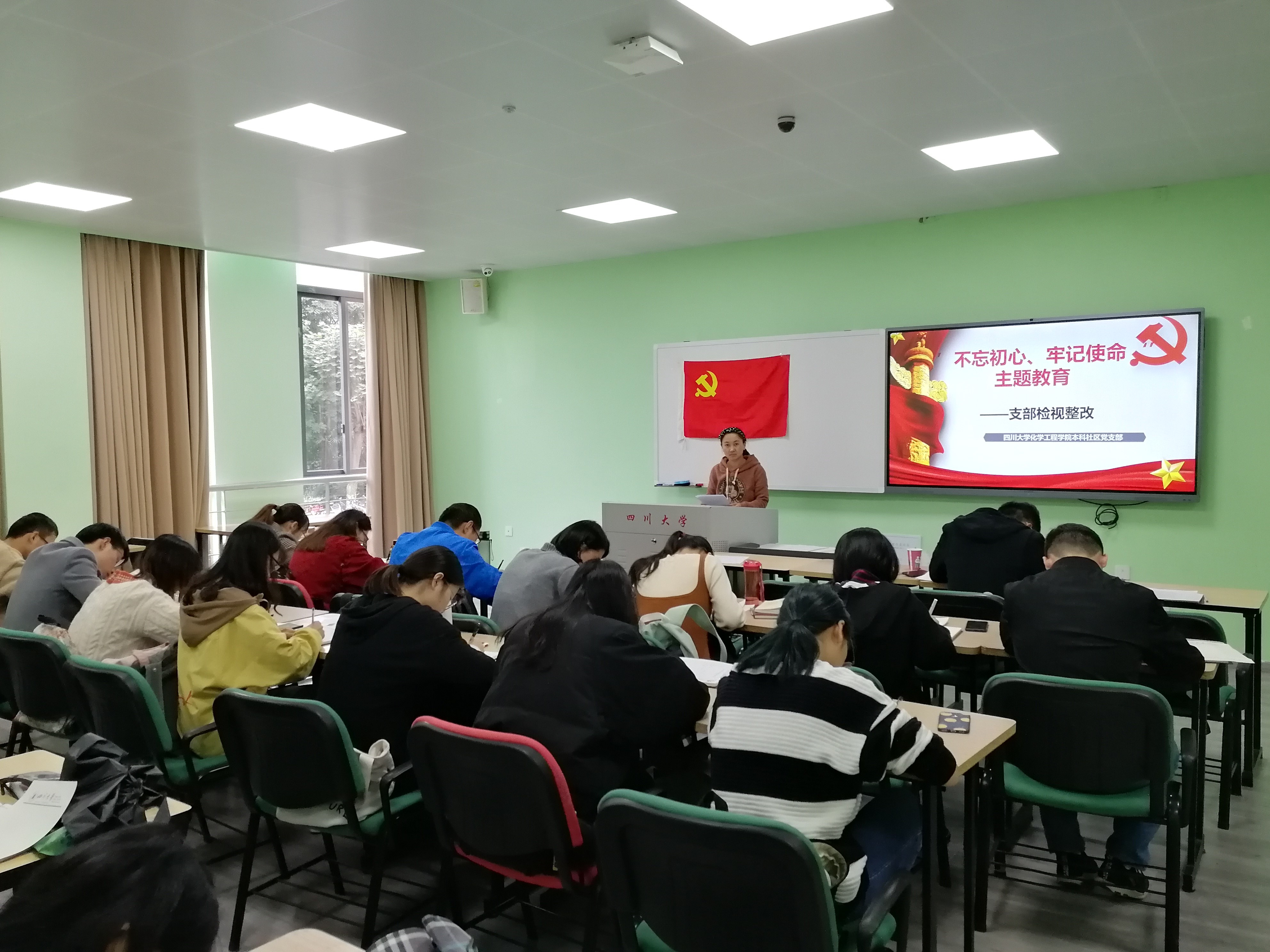 2019年10月25日星期五13:30,bb贝博艾弗森官方网站本科社区支部在江安校区综合楼B座207教室开展支部检视整改活动。此次党组织生活在各位同志的积极参与下取得了圆满成功。