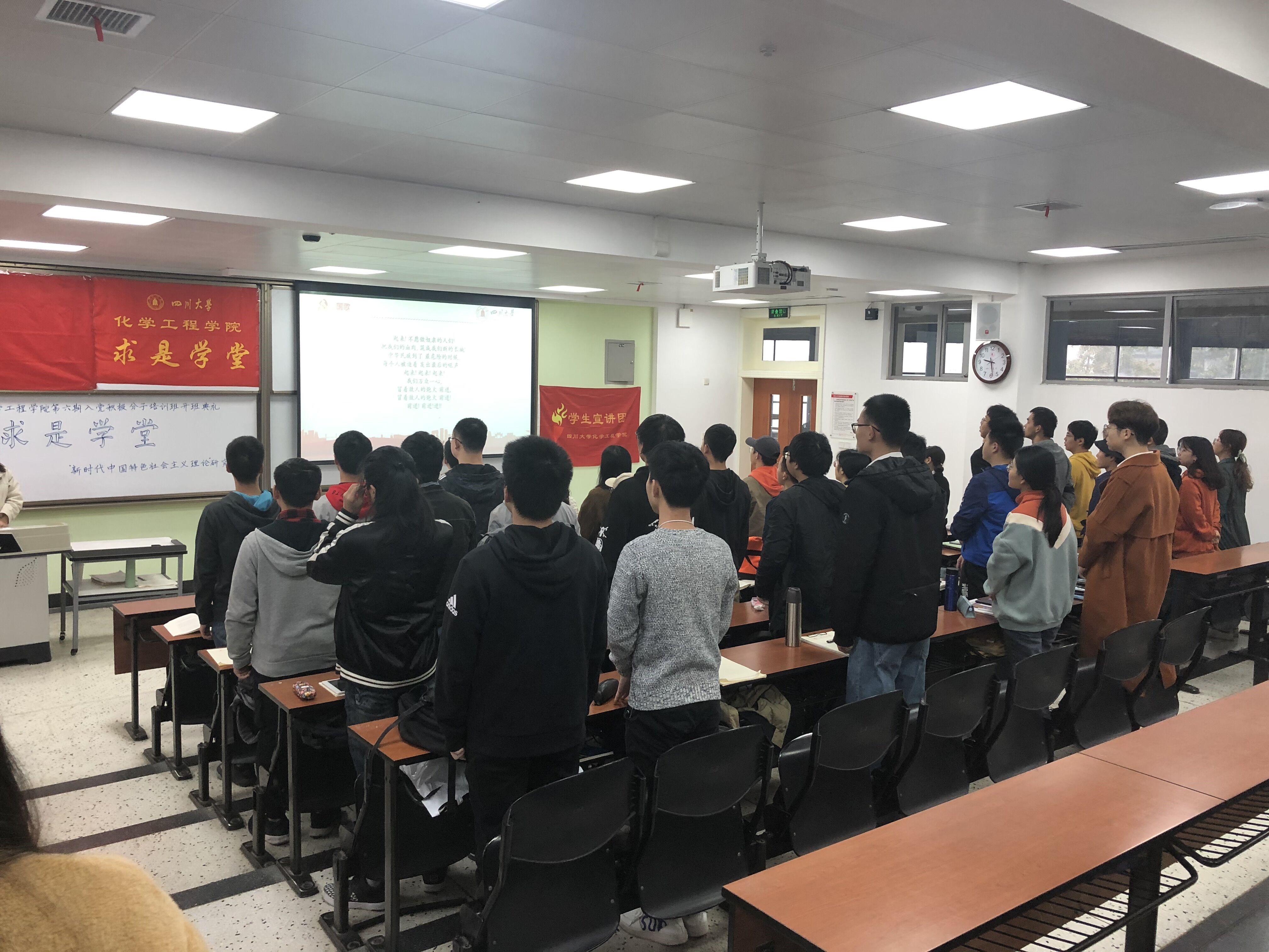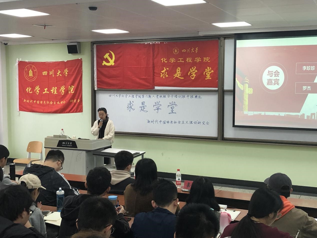2019年11月16日上午九点三十分在江安校区第一教学楼B座B303教室,成功举办了ballbet贝博官方网站“求是学堂”第六期入党积极分子培训班开班典礼。此次开班典礼由ballbet贝博官方网站19级新生冯枭主持,bb贝博艾弗森官方网站李珍珍老师进行了主题为“不忘初心 明确责任担当,牢记使命 争当优秀党员” 的讲话,优秀学员代表18级员工陈凤进行了主题为“端正入党动机 争做时代新人”的发言。同时参会的还有bb贝博艾弗森官方网站优秀博士生代表罗杰和59位培训学员。此次培训的目的是以马列主义、毛泽东思想和中国特色社会主义理论体系为指导,学习贯彻党的十九大精神,加强党的基本理论和基本知识的培训学习,坚定共产主义理想信念,使学员进一步树立正确的世界观、人生观、价值观,端正入党动机,明确努力方向,以实际行动争取早日加入中国共产党。