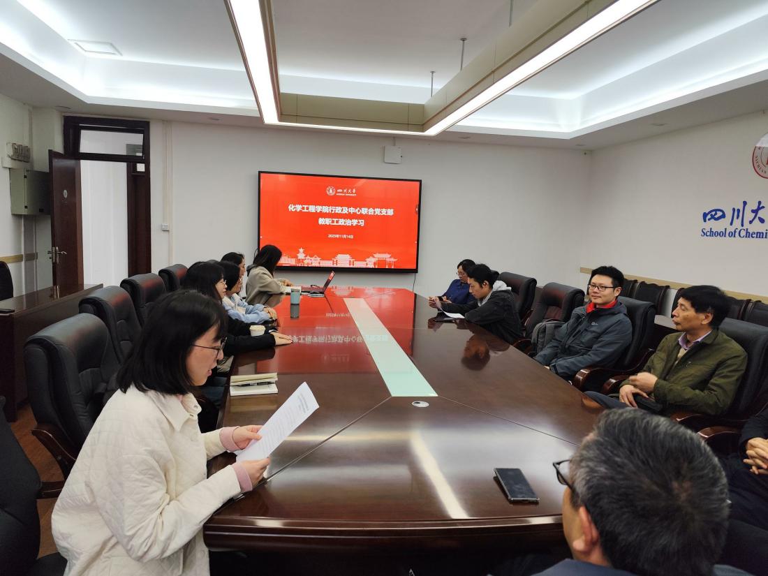 2025年11月14日下午,bb贝博艾弗森官方网站全体行政老师和工程实验教学中心全体实验技术人员在望江校区化工学院235会议室开展了政治学习和支部学习,围绕学习贯彻党的二十届四中全会精神开展专题学习。本次会议由化工行政及中心联合党支部书记高敏同志主持。